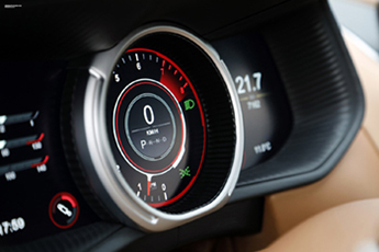 Sur le haut de la console centrale se trouve le bouton « démarrer », que j’actionne enfin, réveillant de façon étonnamment sage le V12. Face à moi, la nouvelle instrumentation digitale s’allume. C’en est fini des deux compteurs aux aiguilles inversées. Pour autant, c’est une réussite esthétique en plus d’être parfaitement lisible.