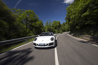 Essai Porsche 911 Carrera 4 GTS Cabriolet : allégorie de la polyvalencePorsche 911, un nom mythique qui en fait rêver plus d’un. Un nom qui ne veut pourtant pas dire grand-chose tant la gamme 911 est vaste et le champ des possibles étendu. Vous avez le choix de la transmission, arrière ou intégrale, de la puissance, entre 370 et 700 ch ou encore avec ou sans toit, bourgeoise ou radicale, en boîte mécanique ou automatique sans parler des options qui élargissent encore les possibilités. Aujourd’hui, la marque allemande m’a convié en Sardaigne afin d’essayer celle qui fait le lien entre sportivité et usage quotidien et qui se veut la plus polyvalente de la gamme, la 911 GTS. Texte : Frédéric Dhieux - Photos : Étienne Rovillé Imaginions que vous souhaitiez une 911, ce qui n’a rien de honteux, et que vous aimeriez pouvoir tout faire avec : cruiser décapoté au bord de plage, arsouiller à la montagne, rouler au quotidien ou vous offrir une session circuit à l’occasion. C’est justement ce que j’ai fait lors de cet essai, excepté la sortie circuit, au volant d’une superbe Carrera 4 GTS cabriolet habillée du blanc Carrera métallisé. C’est sous un ciel bleu azur que je découvre les spécificités esthétiques du modèle telles quel le bouclier avant Sport Design, le spoiler avant rabaissé ou encore l’aileron arrière qui, une fois déployé, est rehaussé par rapport à une Carrera S. Ces trois changements n’apportent pas qu’un style spécifique à la GTS, mais permettent surtout de réduire le coefficient de portance sur les trains avant et arrière. Le modèle reçoit en plus des feux arrière teintés, une double sortie d’échappement noire ou encore les lamelles de la grille d’entrée d’air en finition noir satiné, couleur que l’on retrouve sur les jantes 911 Turbo S de 20 pouces. À l’avant, les feux sont également noirs par l’option des phares LED équipés du Porsche Dynamic Light System Plus. À l’intérieur, du sport ! L’habitacle fait écho à l’extérieur avec un traitement spécifique plus sportif. Ainsi, de série, la 911 GTS reçoit des sièges Sport Plus en cuir et alcantara noir dont les appuie-tête sont ornés du monogramme GTS. L’ensemble de l’habitacle reçoit sa part d’alcantara que l’on retrouve sur la console centrale, le volant, ainsi que sur les accoudoirs. Mais, comme une Porsche sans options n’est pas vraiment une Porsche, mon modèle d’essai est équipé en plus de l’intérieur tout cuir noir et alcantara avec pack intérieur GTS rouge carmin plus le pack intérieur GTS. L’ensemble apporte un surplus d’alcantara qui voit l’habitacle en être totalement couvert, le tout mis en valeur par des surpiqûres rouges aux accents particulièrement sportifs. ![]()