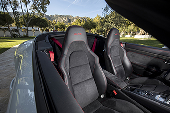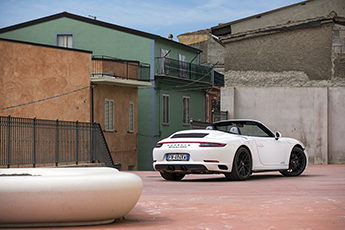 Pour les mélomanes, ma Porsche 911 du jour est équipée, en option, de la très bonne hi-fi Burmester High-End Sound system que je laisse muette pour le moment, plus attiré par le chrono du pack Sport Chrono offert de série ainsi que face à moi, trônant fièrement au centre de l’instrumentation à cinq compteurs, le compte-tours sur fond rouge Indien qui donne le ton. La 911 GTS se balade Malgré ce fond rouge, le compte-tours peine à cacher que la zone rouge se situe à 7 000 tr/min, indiquant ainsi que dans mon dos se trouve un moteur turbocompressé. Car si la gamme 911 laisse beaucoup de choix, celui-ci n’existe plus puisque seules les GT3 et GT3 RS sont désormais équipées d’un moteur atmosphérique. Ma 911 Carrera 4 GTS Cabriolet, pour sa part, s’équipe d’un Flat 6 biturbo de 3,0 litres. L’honneur est sauf, le nombre de cylindres reste le bon, voyons voir ce que donne la sonorité. Je glisse la clef dans le contact à gauche du volant et… ce n’est pas si mal. Frustré que j’étais par l’essai de la Cayman GTS et de son 4 cylindres, j’étais déjà prêt à me plaindre. Mais dans les faits, le Flat 6 semble bien présent, bien qu’un peu étouffé. Mon trajet, absolument indirect, débutera dans les montagnes du centre de l’île pour rejoindre les bords de mer à Porto Sa Ruxi sur la côte sud-est en empruntant des routes délicieusement désertes à cette saison. Ces routes sont d’ailleurs un pousse-au-crime qui tente vicieusement de m’inciter à ne même pas respecter les temps de chauffe du moteur. Heureusement, la météo est particulièrement bonne et les paysages fantastiques, alors je m’offre 20 minutes de conduite tranquille. Décapoté, bien installé dans les confortables sièges, mode de conduite Normal activé, je cède à l’appel du système audio et laisse la voiture s’occuper de tout, excepté du volant bien sûr, laissant l’excellente boîte PDK égrener les rapports sans le moindre à-coup tandis que l’amortissement filtre parfaitement les quelques irrégularités de la route malgré l’abaissement de 10 mm de série de la gamme GTS. Je profite ainsi du climat chaleureux et des beaux panoramas colorés emplis de fleurs qui distillent leurs fragrances au gré des vents tandis que la 911 se joue de tout virage et relance d’une force tranquille, me laissant pleinement profiter de la quiétude de la balade. Dans GTS, il y a sport ! Après cette agréable flânerie, je laisse ma petite voix maléfique se faire entendre et enclenche le mode Sport. Le Porsche Active Suspension Management (PASM), proposé de série, durcit l’amortissement tandis que l’échappement actif se libère, et la boîte PDK devient plus rapide. Ce sont les conditions idéales pour faire parler les chiffres. Avec une puissance de 450 ch à 6 500 tr/min et 550 Nm de couple de 2 150 à 5 000 tr/min, la belle est capable de couvrir le 0 à 100 km/h en seulement 3,7 secondes ou encore d’atteindre les 306 km/h. Mais les chiffres, aussi bons soient-ils, sont une chose, le ressenti en est une autre et sur ce point-là, la GTS en offre pour son argent. Alors certes, la sonorité autant que l’élasticité demeurent en deçà de celles des précédents Flat 6 atmosphériques, mais les ingénieurs ont fait du bon travail pour que l’on n’y perde pas trop. Au final, le Flat 6 biturbo de 3,0 litres propose une bande-son décente et, surtout, ne s’épuise jamais avant le rupteur à 7 500 tr/min en reprenant sans rechigner, quel que soit le régime moteur. Le couple et la puissance sont transmis aux 4 roues par la boîte de vitesses à double embrayage que j’ai pris soin de passer en manuel afin d’anticiper au mieux via les palettes au volant. La réactivité et l’efficacité de la PDK frôlent la perfection tant elle est rapide et permissive, me permettant d’être toujours sur le bon rapport et le bon régime. ![]()