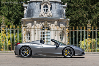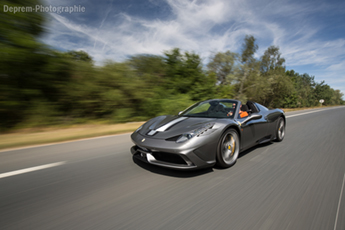 L’envie m’a pris ce matin d’aller rouler, il faisait beau, ce sont les vacances, les routes se font vides et j’ai donc porté mon choix sur un cabriolet. Et plutôt que de faire les choses à moitié, je suis allé récupérer une Ferrari 458 Speciale Aperta chez Peter Moss AutoclubSport. Le choix n’est pas anodin, premièrement c’est une Ferrari, mais c’est également à n’en pas douter l’avant-dernière Ferrari à moteur atmosphérique – viendra ensuite la F12 GTO – et quel moteur ! Il délivre la bagatelle de 605 ch à son régime maximal stratosphérique de 9 000 tr/min, et avec sa cylindrée de 4,5 l on arrive à un ratio de 135 ch au litre, ce qui lui a valu le titre de Engine of the year en 2014.