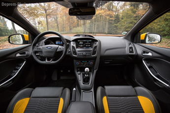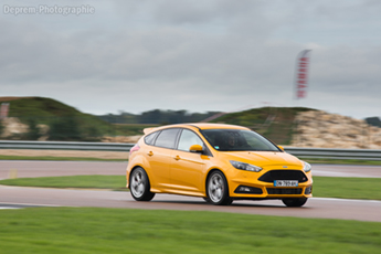 En marge de mon essai de la Mustang V8 sur le circuit de la Ferté-Gaucher, Ford m’avait proposé de faire quelques tours avec la Focus ST, ce n’est certes pas de la même veine, mais par principe je ne refuse jamais un essai. Me voilà donc assis dans le joli siège baquet noir et jaune, confortable et qui semble assurer un bon maintien. Je vais vite le savoir.